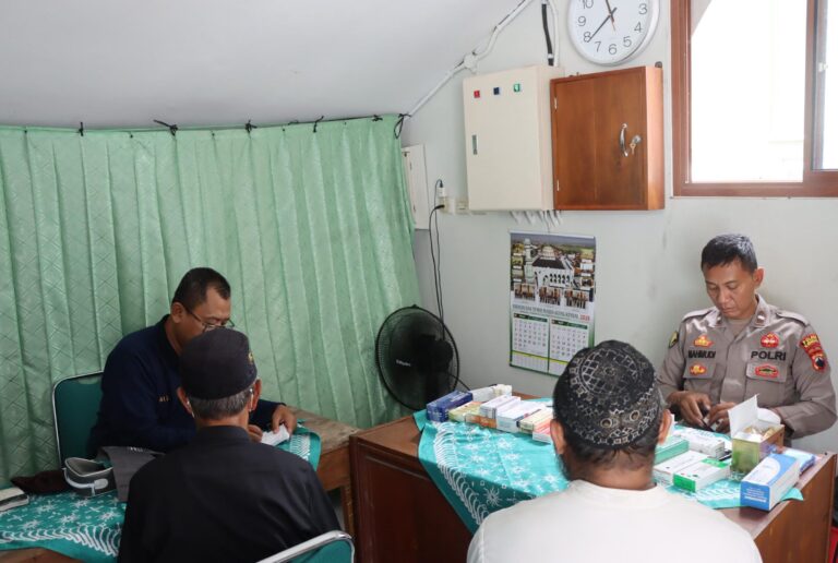 Sidokkes Polres Kendal Gelar Pemeriksaan Kesehatan Gratis bagi Jamaah Salat Jumat di Masjid Agung.