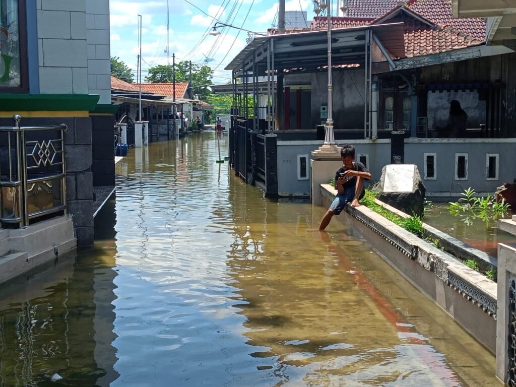 Kondisi Dusun Ngebum, Desa Mororejo, Kecamatan Kaliwungu, mendadak lumpuh setelah banjir rob menerjang permukiman, Minggu (2/11/2025) | Wawasannews
