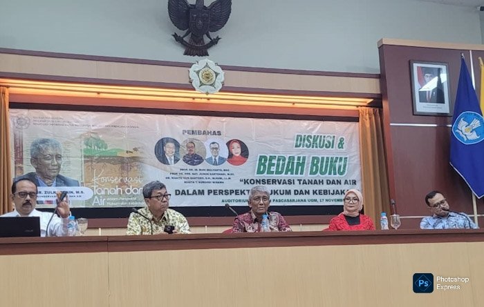YOGYAKARTA, Wawasannews.com – Program Studi Magister Ilmu Lingkungan, Sekolah Pascasarjana Universitas Gadjah Mada (UGM), menggelar Bedah Buku “Konservasi Tanah dan Air dalam Perspektif Hukum dan Kebijakan” pada Senin, 17 November 2025.