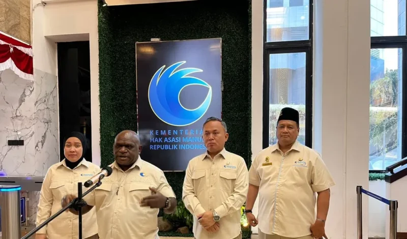 JAKARTA, Wawasannews – Menteri Hak Asasi Manusia (MenHAM) Natalius Pigai menetapkan nama Gedung Kementerian HAM menjadi Gedung KH Abdurrahman Wahid. Keputusan tersebut diambil setelah Presiden Prabowo Subianto secara resmi menganugerahkan gelar Pahlawan Nasional 2025 kepada KH Abdurrahman Wahid atau Gus Dur, Senin (10/11/2025).