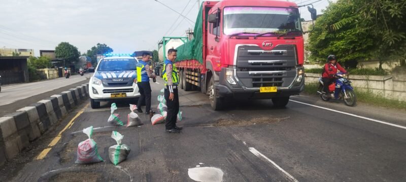 KENDAL, Wawasannews – Satlantas Polres Kendal melaksanakan kegiatan penandaan dan penambalan jalan berlubang di Jalan Pantura Pucangrejo, Kendal, pada Rabu, 12 Februari 2025 pagi. Kegiatan ini bertujuan untuk meningkatkan keselamatan pengguna jalan dan mengurangi risiko kecelakaan lalu lintas akibat jalan rusak.